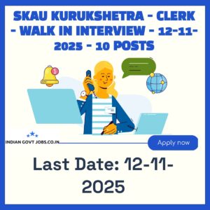 Shri Krishna Ayush University (SKAU Kurukshetra) invites eligible candidates for a walk-in interview on 12-11-2025 for 10 contractual Clerk posts. Candidates must have experience working…
