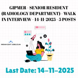 Govind Ballabh Pant Institute of Postgraduate Medical Education and Research (GIPMER) invites eligible candidates for a Walkin interview on 14-11-2025 for 5 Senior Resident posts…