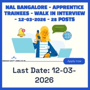 National Aerospace Laboratories (NAL Bangalore) invites fresh ITI qualified candidates for 28 Apprentice Trainee positions on a contract basis through a walk-in interview on 11-03-2026…