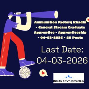 Ammunition Factory Khadki invites applications for 40 contract-based Graduate Apprentices in various general streams (BA, BSc, BCom, BCA, BBA) from Maharashtra. The apprenticeship is for…