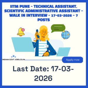 IITM Pune invites walk-in interviews for 7 contractual posts of Technical Assistant and Scientific Administrative Assistant. The posts are temporary under a project with possible…