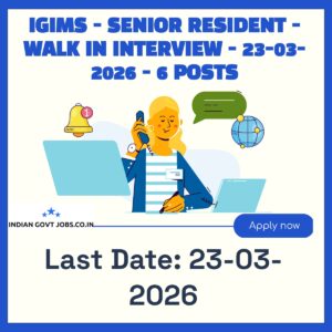 IGIMS Patna invites applications for 6 Senior Resident posts in the Department of Orthopaedics on a contract basis for 89 days. Candidates with MS/DNB in…
