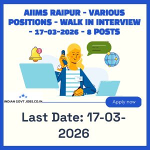 AIIMS Raipur invites applications for 8 contractual posts of District Nutrition Coordinator and Block Nutrition Coordinator under the Department of Pediatrics. The contract runs from…