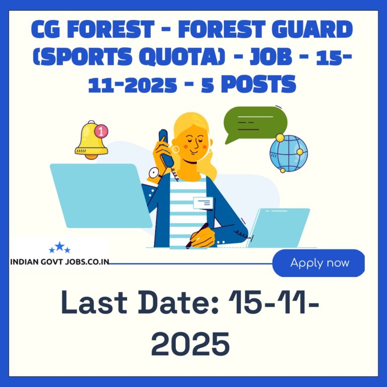 Chhattisgarh Forest Department invites applications for 5 posts of Forest Guard (Sports Quota). Candidates must have passed 10th class and represented at state or national level in sports. Age limit is 18-40 years. Pay scale is Pay Level 4 (19500…