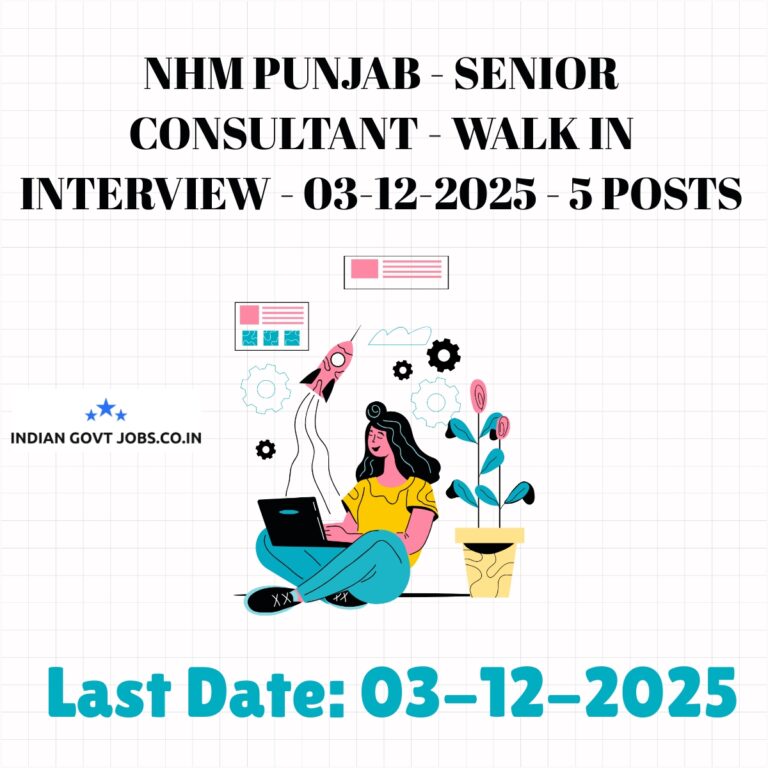 National Health Mission Punjab (NHM Punjab) invites eligible candidates for walk-in interviews on 03-12-2025 at 9 AM for 5 contractual posts of Senior Consultant. Candidates must have MD/MS/DNB or equivalent in the relevant specialty with at least 5 years of…