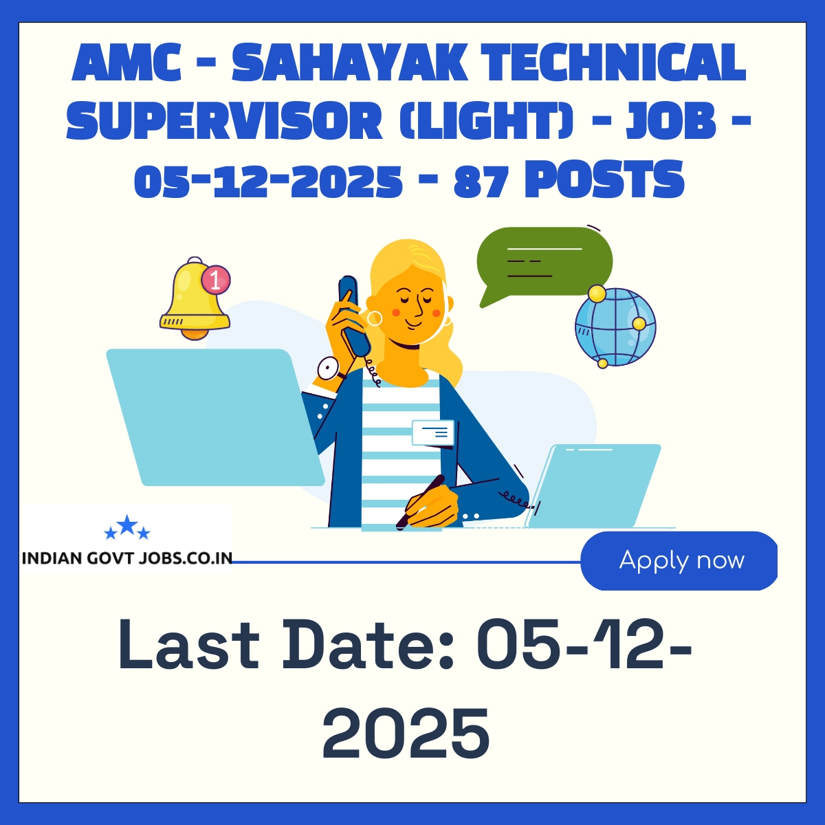 Amdavad Municipal Corporation (AMC) invites online applications for 87 permanent posts of Sahayak Technical Supervisor (Light) in Gujarat. Candidates with BE, BTech, or Diploma in Electrical or Mechanical engineering up to 30 years of age can apply. Selection involves a written test followed by an interview. The application fee is Rs 250 for reserved categories and Rs 500 for others, payable online. Applications must be submitted by 05-12-2025.