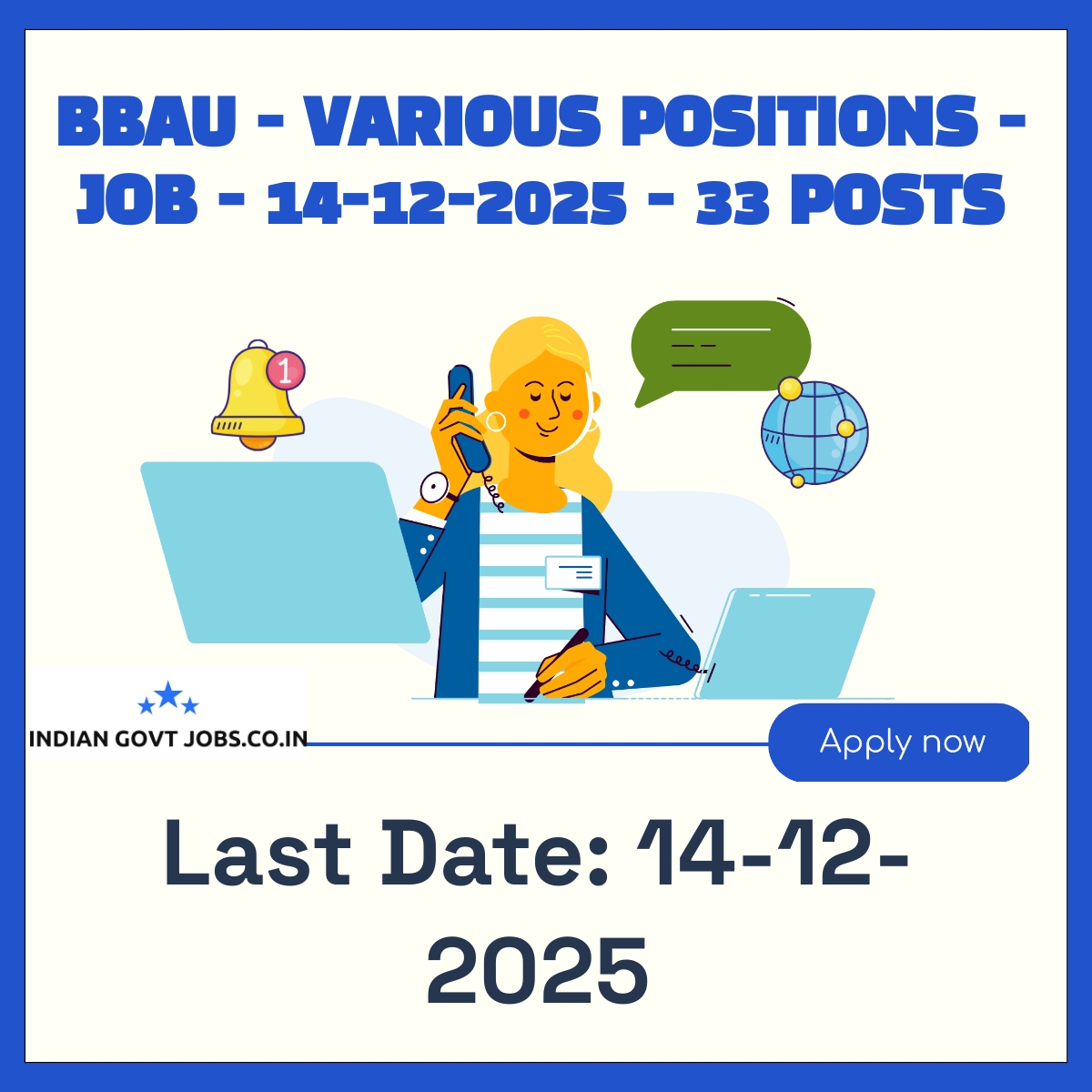 Babasaheb Bhimrao Ambedkar University (BBAU) invites online applications for 33 permanent non-teaching posts including LDC, Private Secretary, and various technical and administrative positions. Candidates from Uttar Pradesh with qualifications ranging from 10th pass to Master’s degree and relevant experience can apply. The last date to apply online is 14-12-2025. Selection will be through interview. Application fees vary by category and must be paid online.