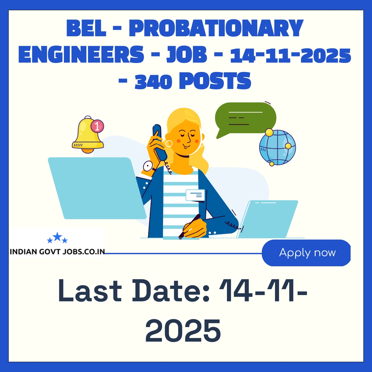 Bharat Electronics Limited (BEL) invites online applications for 340 regular posts of Probationary Engineers in various engineering disciplines. The recruitment is for multiple locations across several Indian states. Candidates must be engineers in specified fields and meet the age limit of 25 years. Selection involves a computer-based test followed by an interview. Application fee applies to certain categories. The last date to apply online is 14-11-2025.