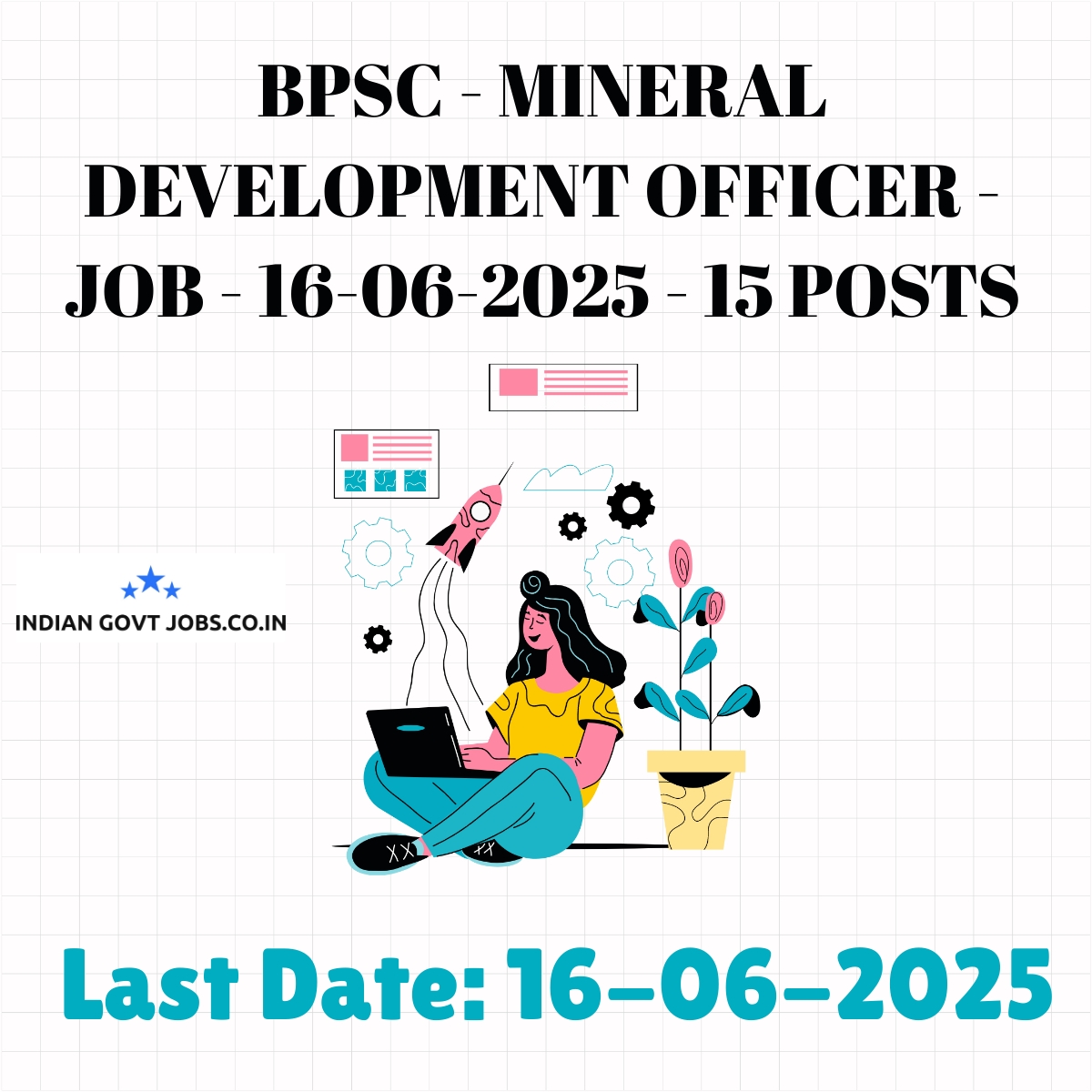 Bihar Public Service Commission (BPSC) invites online applications for 15 permanent posts of Mineral Development Officer. Candidates with M.Sc. or M.Tech. in Geology or a degree in Mining Engineering, aged between 21 and 37 years, can apply online by 16-06-2025. The selection process includes a written exam and an interview. Application fees vary by category and payment is online. Official notification and application form are available online.