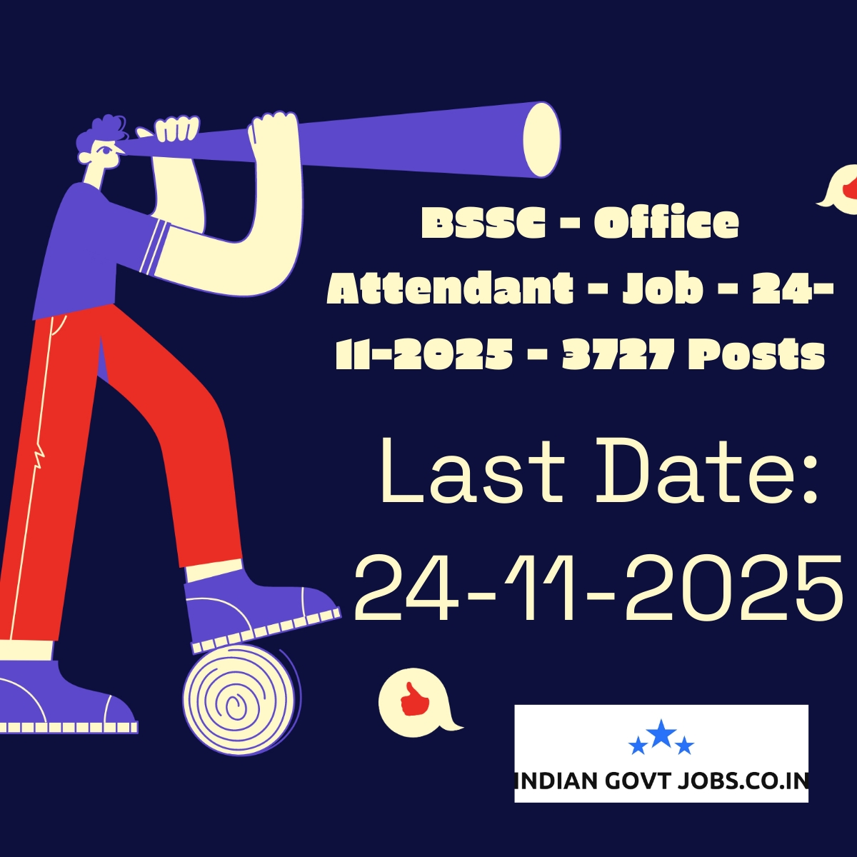 Bihar Staff Selection Commission (BSSC) invites online applications for 3727 permanent Office Attendant posts. Candidates must have passed 10th standard and be aged between 18 and 37 years. Selection involves a preliminary exam followed by a main exam. Application fees vary by category and must be paid online. The last date to apply is 24-11-2025.