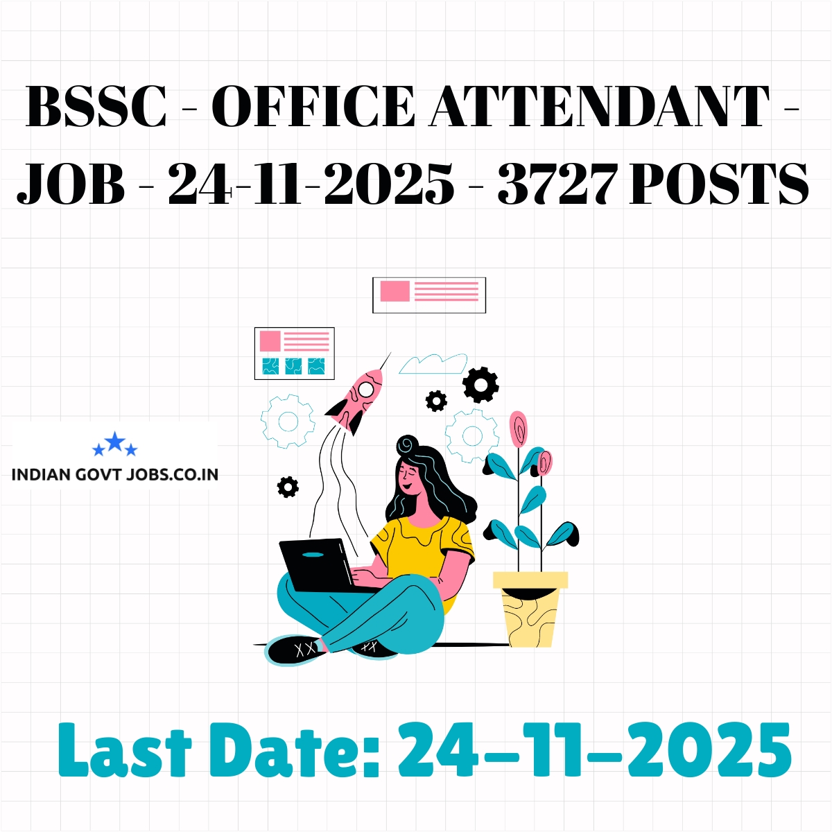 Bihar Staff Selection Commission (BSSC) invites online applications for 3727 permanent Office Attendant posts. Candidates must have passed 10th standard and be aged between 18 and 37 years. Selection involves a preliminary exam followed by a main exam. Application fees vary by category and must be paid online. The last date to apply is 24-11-2025.
