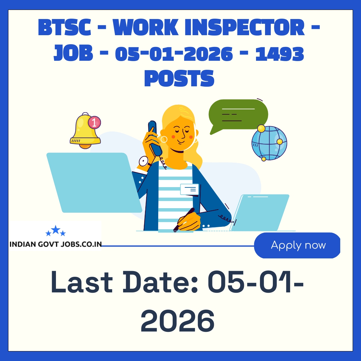 Bihar Technical Service Commission (BTSC) invites online applications for 1493 regular posts of Work Inspectors in Bihar. Candidates must have ITI in related trade and be aged between 18 and 37 years as of 01-08-2025. The recruitment involves an online test of 100 questions. The application fee is Rs 100 payable online. Applications must be submitted by 05-01-2026.