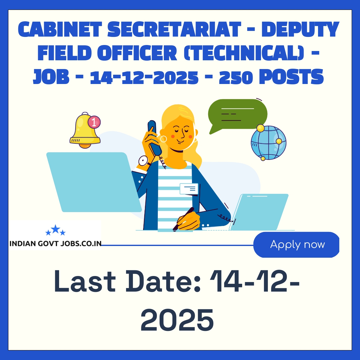 Cabinet Secretariat invites applications for 250 posts of Deputy Field Officer (Technical) through GATE 2023-2025 scores. Candidates must have a Bachelor’s degree in Engineering/Technology or a Master’s degree in Science with a valid GATE score. The maximum age limit is 30 years. Selection is based on GATE score merit followed by an interview. No application fee is required. Applications must be sent offline by 14-12-2025 to the specified address in New Delhi.