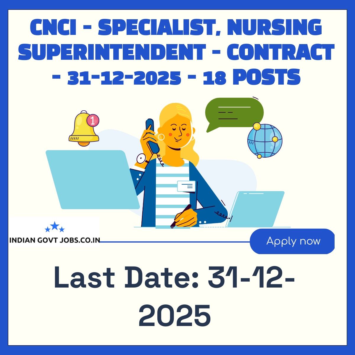 Chittaranjan National Cancer Institute (CNCI) invites applications for 18 contractual posts including Specialist Grade–I, Specialist Grade–II, and Principal(Nursing)/Nursing Superintendent. Candidates must meet specified qualifications and age limits. The selection process includes application scrutiny and interview. Application fee varies by category and must be paid online. Applications must be sent offline in the prescribed format to the designated address by 31-12-2025.