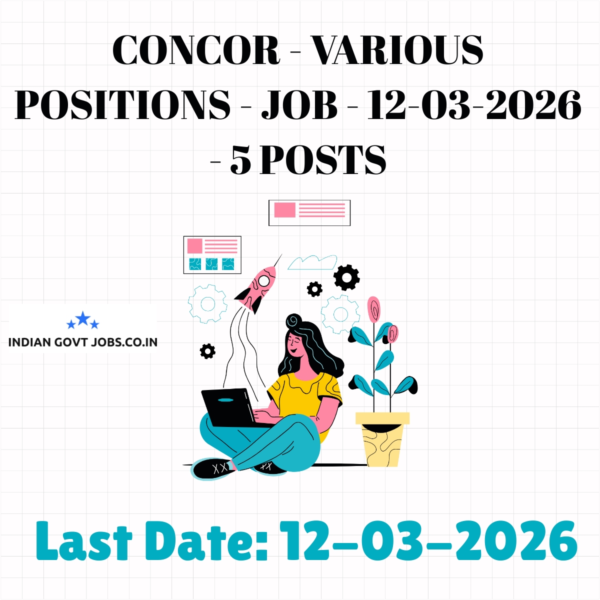 - Send application to Sr. General Manager (Human Resources), CONCOR, 3rd Floor, NSIC Business Park Building, Okhla Industrial Estate, New Delhi – 110020 by 12-03-2026
