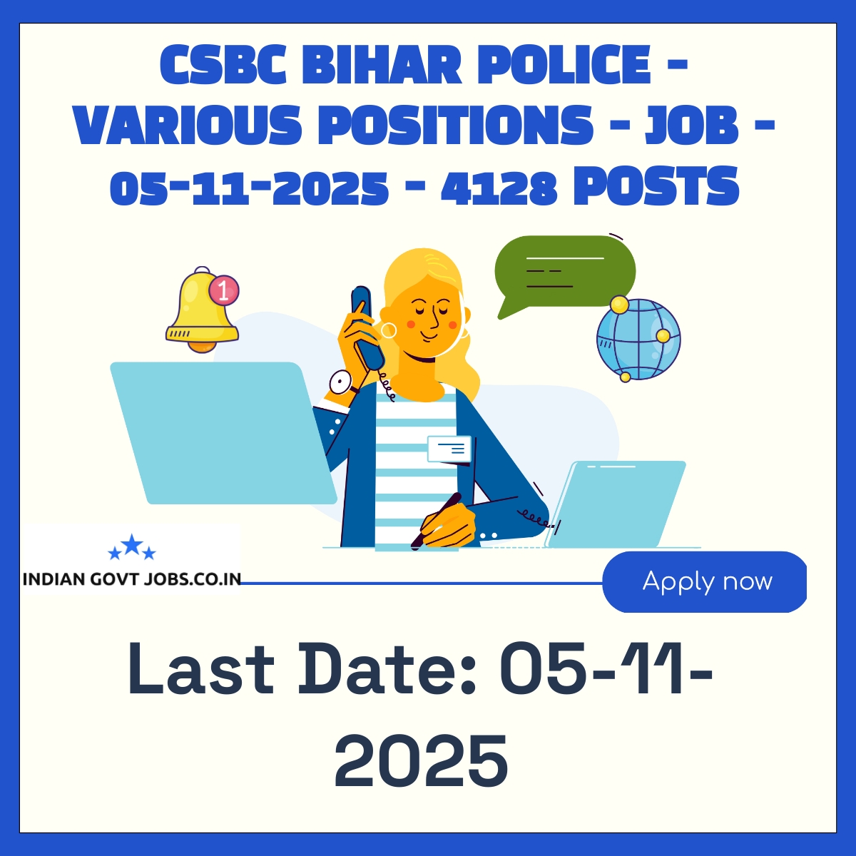 Central Selection Board of Constable (CSBC) Bihar Police invites online applications for 4128 permanent posts of Prohibition Constable, Jail Warder, and Mobile Squad Constable. Candidates must have Intermediate (12th) qualification and be aged between 18 and 25 years as of 01-08-2025. The selection involves a written exam followed by a physical eligibility test. Application fee is Rs 100 payable online. Applications start from 06-10-2025 and close on 05-11-2025. Apply online only.