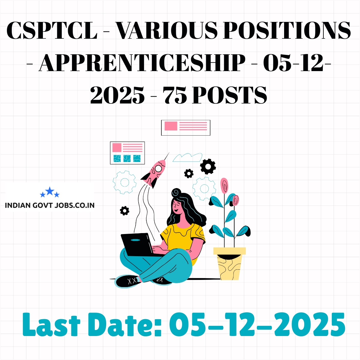 Chhattisgarh State Power Transmission Company Limited (CSPTCL) invites applications for 75 Apprenticeship posts on a contract basis. Positions include Graduate Apprentice, Graduate Apprentice (General), and Technician Apprentice with salaries ranging from Rs 10900 to Rs 12300. Candidates must submit applications with required documents by 05-12-2025. Selection is based on merit and document verification. No application fee is required. Applications must be sent offline to the Chief Engineer (Human Resource) at CSPTCL, Raipur.