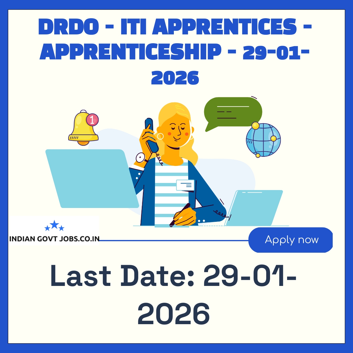 DRDO invites online applications for ITI Apprenticeship positions at Defence Research and Development Laboratory, Telangana. The apprenticeship is contractual for one year from 01-04-2026 to 31-03-2027. Candidates must have ITI qualification in respective trades. No application fee is required. Selection involves application screening and document verification. Applications must be submitted online by 29-01-2026.