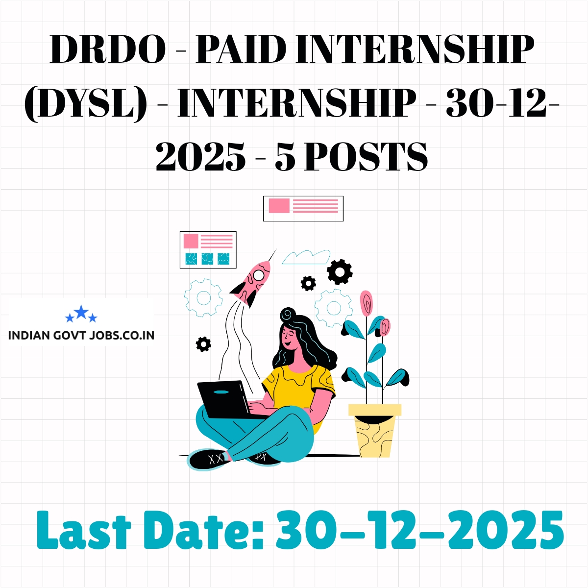 DRDO invites applications for 5 paid internship positions at the DRDO Young Scientist Laboratory – Artificial Intelligence (DYSL-AI), Bengaluru. The internship is for 6 months focusing on AI, Machine Learning, Data Science, and Computer Science projects. Candidates with B.E./B.Tech. (Final Year) or M.Sc./M.Tech. in relevant fields can apply by sending their application via email by 30-12-2025. The selection involves application scrutiny and interviews. No application fee is required.