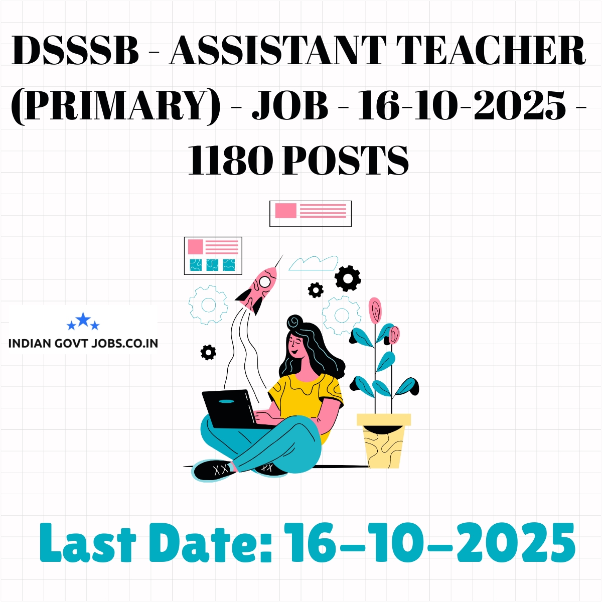 Delhi Subordinate Services Selection Board (DSSSB) invites online applications for 1180 permanent posts of Assistant Teacher (Primary) in Delhi. The recruitment is for two categories: Directorate of Education (1055 posts) and New Delhi Municipal Council (125 posts). Candidates must meet the prescribed qualifications and age limit of maximum 30 years as of 16-10-2025. The selection will be through a One Tier Examination. Application fee is Rs 100 for general candidates, with exemptions for women, SC/ST, PwBD, and ex-servicemen. Applications are accepted online from 17-09-2025 to 16-10-2025.