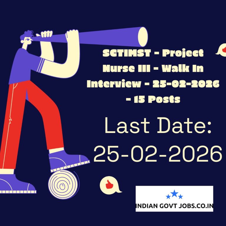 Sree Chitra Tirunal Institute for Medical Sciences and Technology (SCTIMST) is conducting a walk-in interview on 25-02-2026 for 15 Project Nurse III posts on a contract basis in Kerala. Candidates must have a four-year nursing degree or diploma, one year…