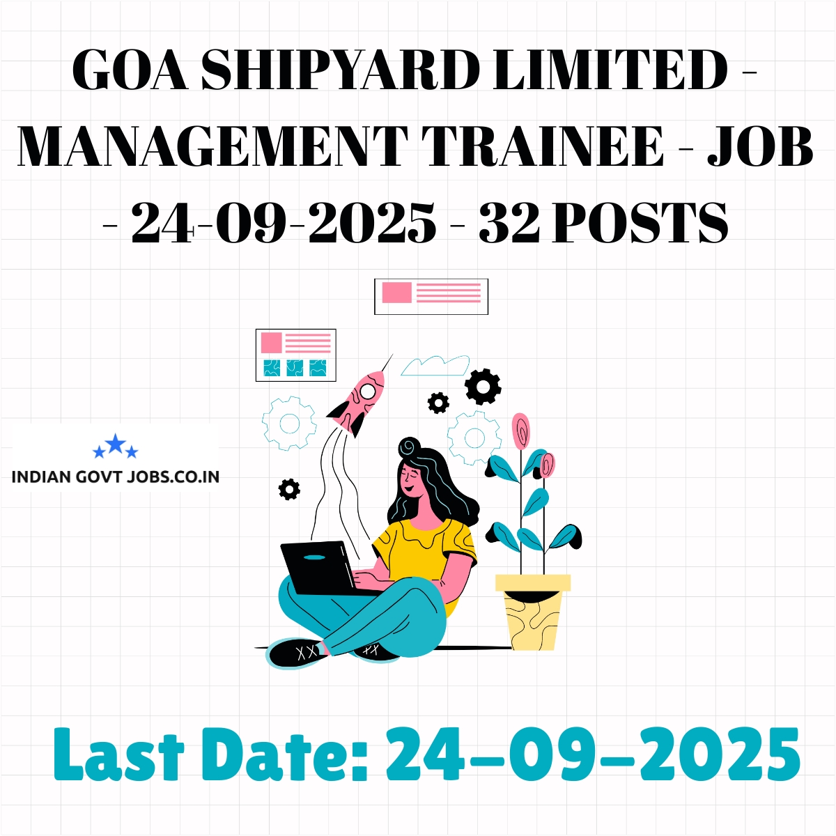 Goa Shipyard Limited invites online applications for 32 permanent Management Trainee posts. Candidates with full-time BE/B.Tech in Mechanical, Electrical, Electronics, Naval Architecture, Robotics or Chartered Accountant qualifications are eligible. The maximum age limit is 28 years as of 31-07-2025. Selection involves a written test (CBT or PBT) and an interview. Application fee is Rs. 500 for general candidates; SC/ST/PwBD/Ex-Servicemen are exempt. Apply online before 24-09-2025.