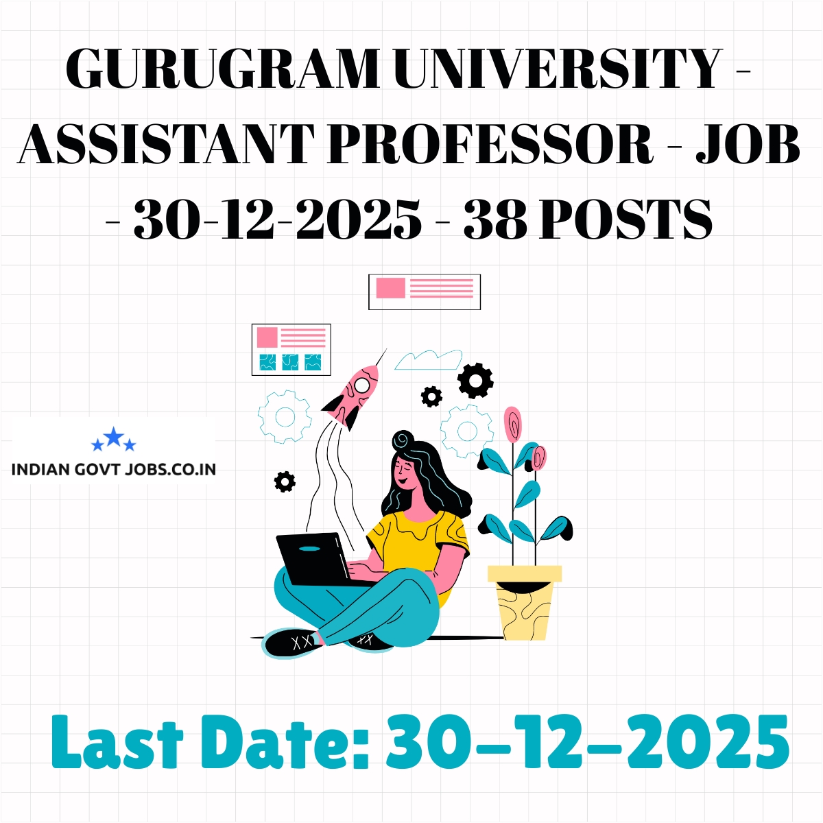 Gurugram University invites online applications for 38 permanent Assistant Professor posts. Candidates must have a Master’s degree with 55% marks in a relevant subject and NET/SLET/SET qualification. The age limit is 18 to 55 years. Selection involves shortlisting based on applications followed by an interview. Application fee varies by category and must be paid online. The last date to apply is 30-12-2025.