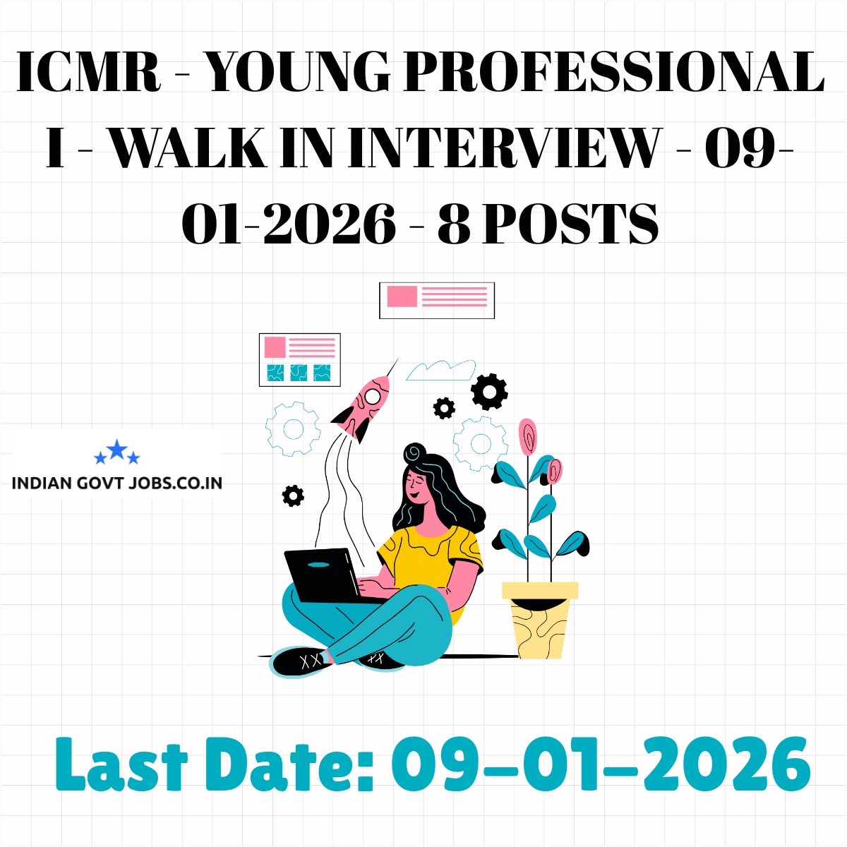 Indian Council of Medical Research (ICMR) invites eligible candidates for a Walkin interview on 09-01-2026 at 9 AM for 8 contractual posts of Young Professional I in Delhi. Candidates must have BCom or BBA with minimum 55% marks and at least 1 year of experience. The maximum age limit is 35 years as of the interview date. No application fee is required. Applicants should bring filled application forms and original certificates for verification at the venue.
