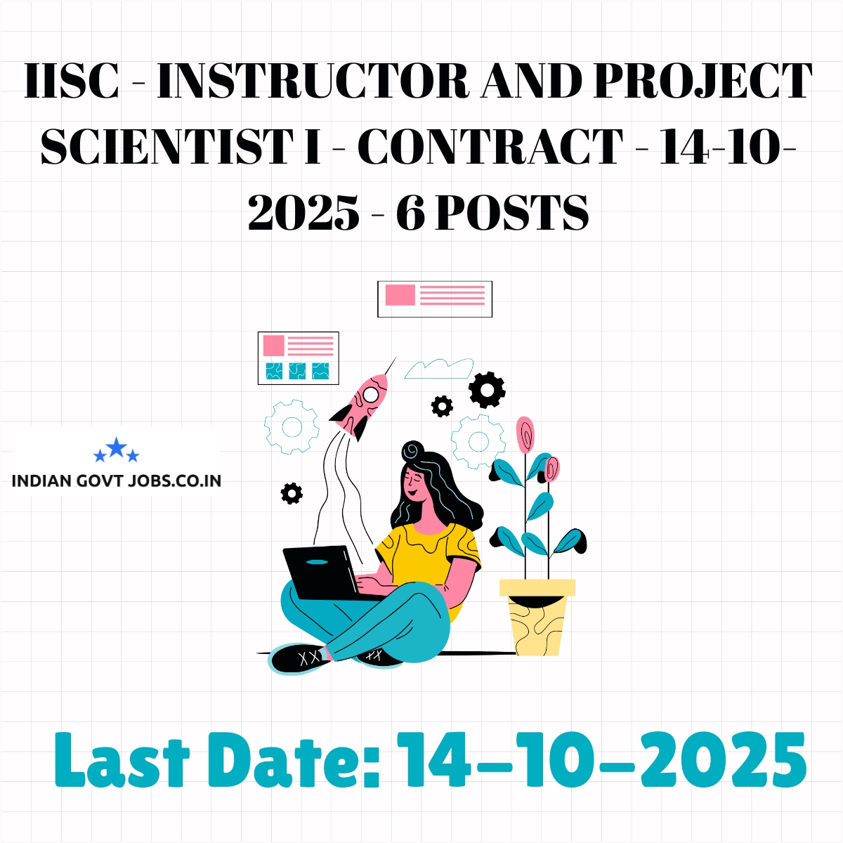Indian Institute of Science Bangalore (IISC) invites online applications for 6 contractual posts of Instructor and Project Scientist I. Candidates must have relevant qualifications including PhD or Doctoral degrees and meet age limits up to 38 years. There is no application fee. Selection involves application review and interview. Applications must be submitted online by 14-10-2025.