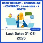 Indian Institute of Science Education and Research Tirupati (IISER Tirupati) is inviting applications for 2 contractual posts of Counsellor. Candidates with a Master’s Degree in Clinical Psychology and 5 years of experience can apply online by 21-03-2025. The selection process includes a review of applications and interviews.