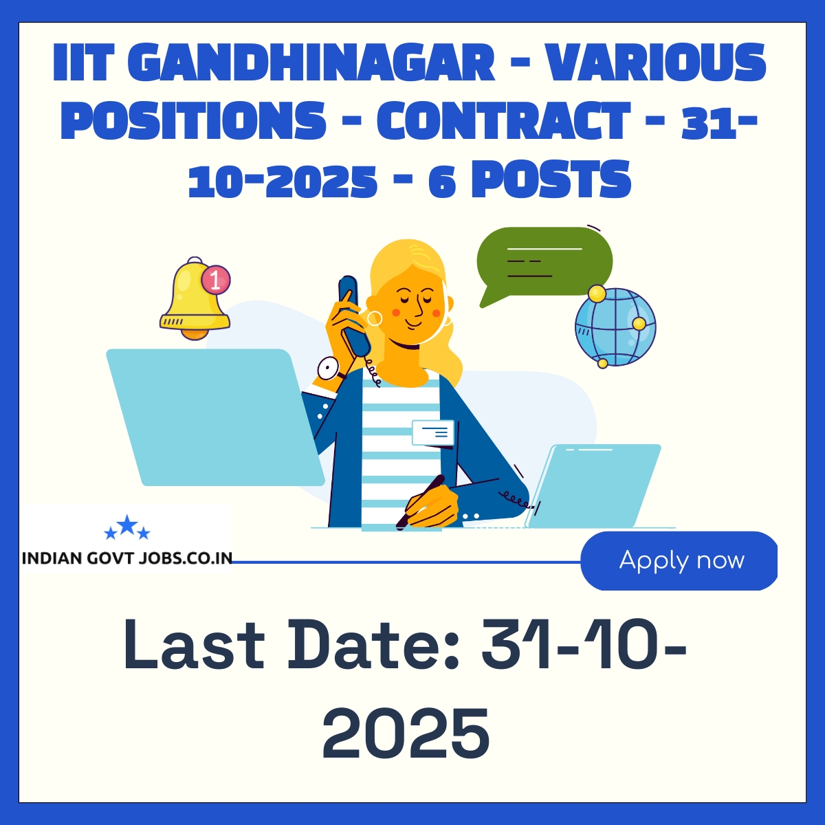 Indian Institute of Technology Gandhinagar (IIT Gandhinagar) invites online applications for 6 contractual posts of IT Associate and Program Associate. Candidates must apply by 31-10-2025. The recruitment is on a contract basis for Gujarat state. The pay scale ranges from Rs 45,000 to Rs 70,000. Minimum qualifications include various graduate and postgraduate degrees with relevant experience. There is no application fee. Selection will be through screening and interview. Applications must be submitted online with scanned photograph and signature.