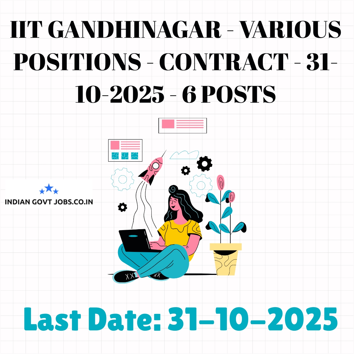 Indian Institute of Technology Gandhinagar invites online applications for 6 contractual posts of IT Associate and Program Associate. Candidates must have relevant qualifications and minimum 4 years experience. The maximum age limit is 40 years as on 31-10-2025. There is no application fee. Selection will be through screening and interview. Applications must be submitted online by 31-10-2025. The recruitment is on a contract basis and is open for candidates from Gujarat.