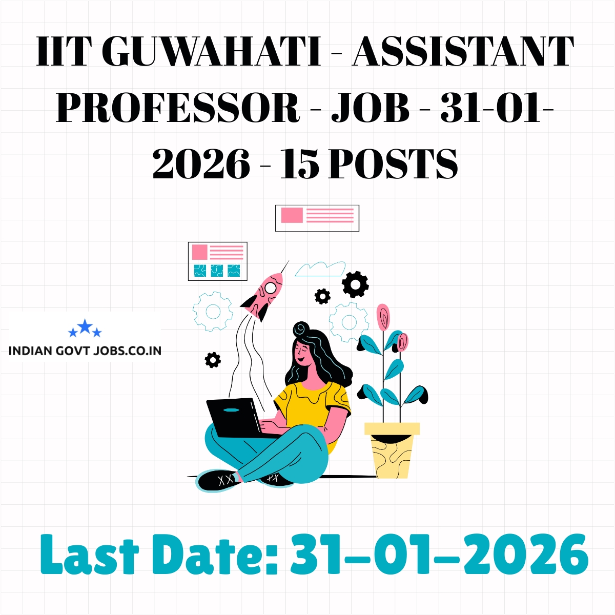 Indian Institute of Technology Guwahati invites online applications for 15 permanent Assistant Professor posts. Candidates must have a Ph.D. with first class or equivalent and minimum 3 years experience. Maximum age limit is 35 years as on 20-12-2025. No application fee is required. Selection will be through interview. Applications must be submitted online by 31-01-2026.