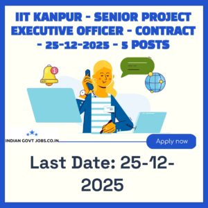 IIT Kanpur invites online applications for 5 contractual posts of Senior Research Analyst. Candidates must have a postgraduate degree in relevant discipline with minimum 4 years experience. The pay scale is Rs. 38,800-96,400. Applications must be submitted online on or before 25-12-2025. There is no application fee. Selection will be through evaluation and interview. Official notification is available online.