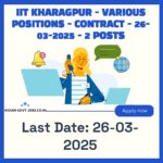 Indian Institute of Technology Kharagpur (IIT Kharagpur) is recruiting for 3 contractual posts: Chief Executive Officer, Chief Operating Officer, and Accounts Executive. The positions require relevant postgraduate or engineering qualifications and experience (3 to 12 years depending on the post). The maximum age limit ranges from 40 to 60 years. The pay scale varies from Rs 60000 to Rs 300000 per month. Applications must be submitted online by 19-04-2025. Selection will be based on shortlisting and interviews. Application fees apply, with concessions for reserved categories.