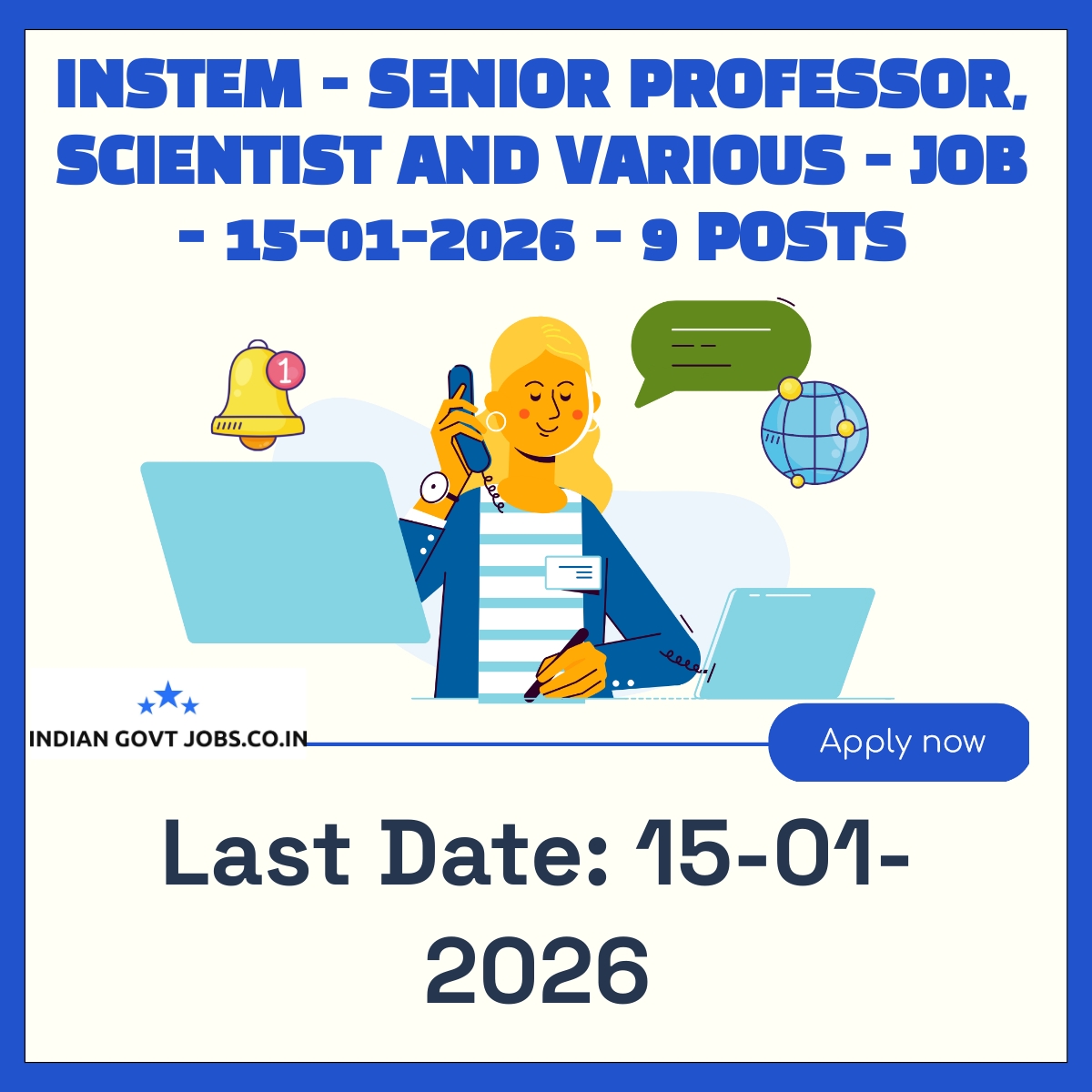 Institute for Stem Cell Biology and Regenerative Medicine (InStem) invites online applications for 9 permanent posts including Senior Professor, Scientist, and various other positions. Candidates must have relevant qualifications such as Ph.D. or Master’s with experience and apply by 15-01-2026. The recruitment involves screening and interview. The posts are based in Karnataka with pay scales ranging from PL-12 to PL-15. Application fees vary by category, with some exemptions. Applications are accepted only online.