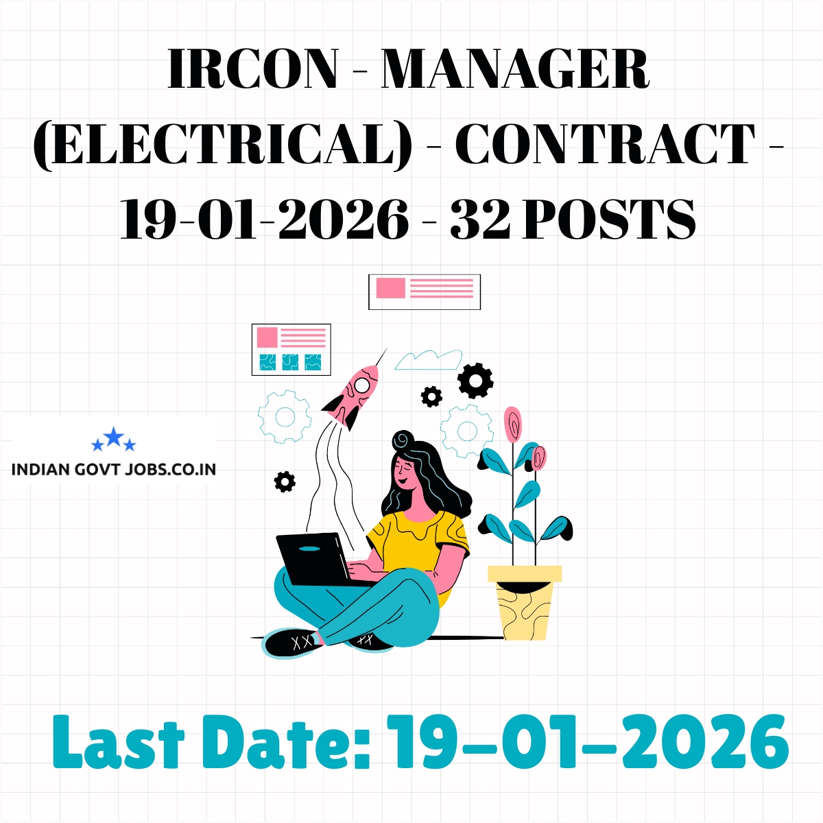 Ircon International Limited invites applications for 32 contractual posts of Manager (Electrical) based in Delhi. Candidates must have a full-time Bachelor’s degree in Electrical Engineering with at least 60% marks and 5 years of experience. The maximum age limit is 50 years as of 01-12-2025. Selection involves a written exam and/or interview. No application fee is required. Applications must be sent offline to the specified address by 19-01-2026 with all relevant documents.