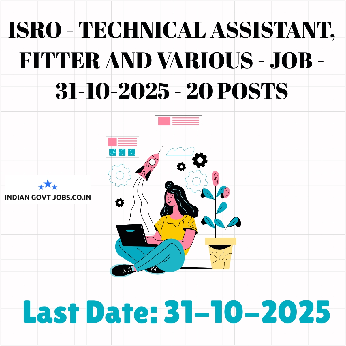 Indian Space Research Organisation (ISRO) invites online applications for 20 regular posts of Technical Assistant, Fitter, and various Technician-B positions at Physical Research Laboratory Ahmedabad. Candidates must apply by 31-10-2025. The recruitment is for permanent posts in Gujarat. Minimum qualifications include Diploma in related engineering trades or ITI with matriculation. Age limit is 18-35 years. Selection involves written and skill tests. Application fees vary by post and category with refunds on attending the written test. Applications are to be submitted online.