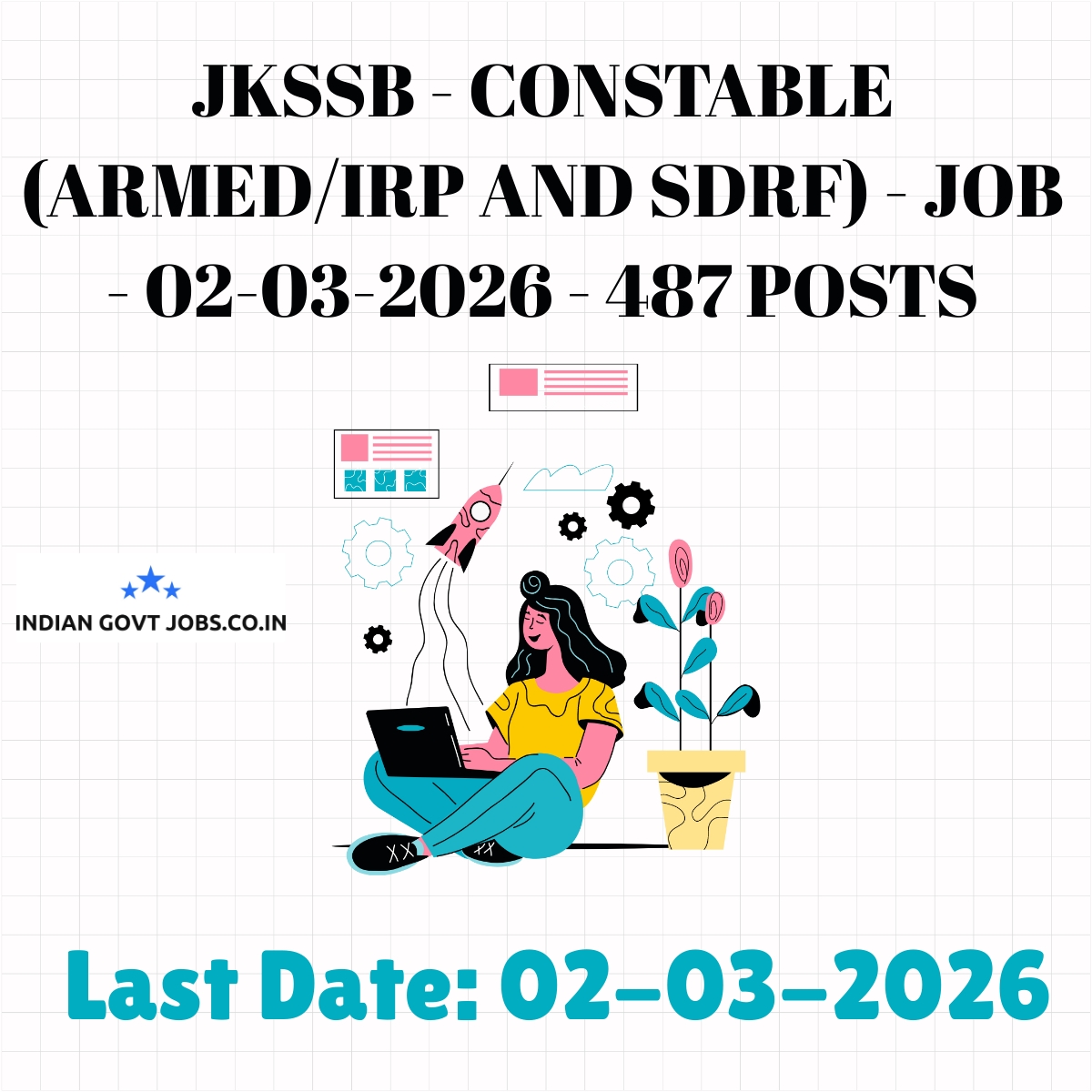 JKSSB invites online applications for 487 permanent Constable posts (Armed/IRP and SDRF) in Jammu & Kashmir Police. Candidates must be permanent residents of Jammu & Kashmir with matriculation qualification. Age limit is 18-28 years, relaxable up to 40 years for certain categories. Selection involves written exam, physical standard and endurance tests, medical exam, and document verification. Application fee varies by category. Apply online between 01-02-2026 and 02-03-2026.