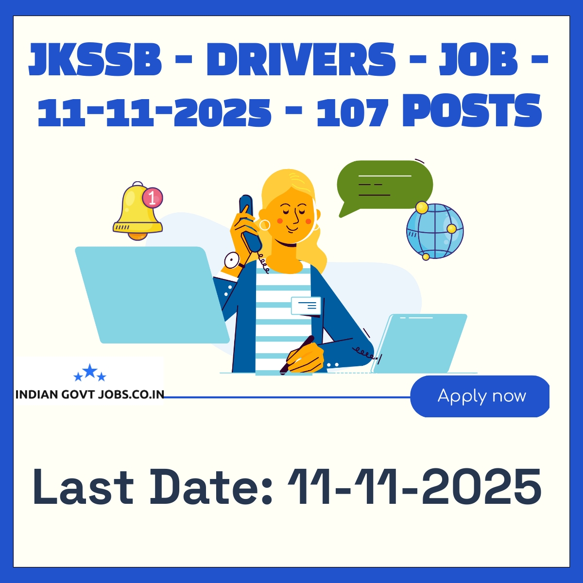 Jammu and Kashmir Service Selection Board (JKSSB) invites online applications for 107 regular Driver posts under various state government departments. Candidates must have minimum matriculation and a valid HGV/PSV driving license along with JK domicile. The maximum age limit is 40 years. The recruitment process includes application screening followed by a test or skill test. The last date to apply online is 11-11-2025. Application fee is Rs. 500 for SC/ST/EWS and Rs. 600 for others, payable online.
