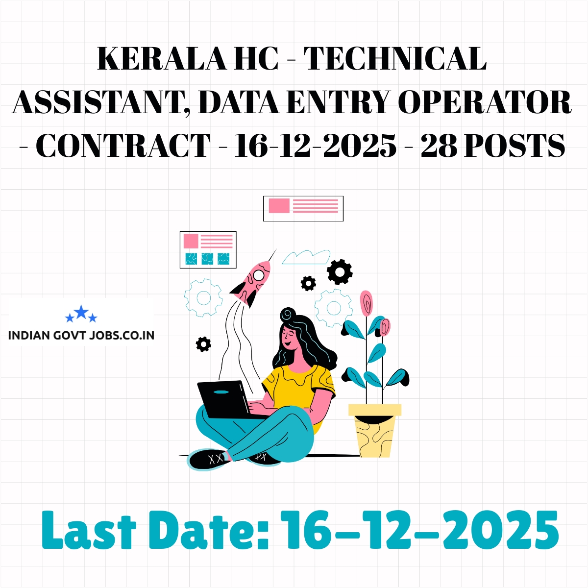 High Court of Kerala invites online applications for 28 contractual posts of Technical Assistant and Data Entry Operator. Candidates must have relevant diplomas or degrees with at least 1 year experience. Age limits are between 18 and 36 years. The application fee is Rs 600 per post payable online. Selection will be through interview. Applications must be submitted online by 16-12-2025.