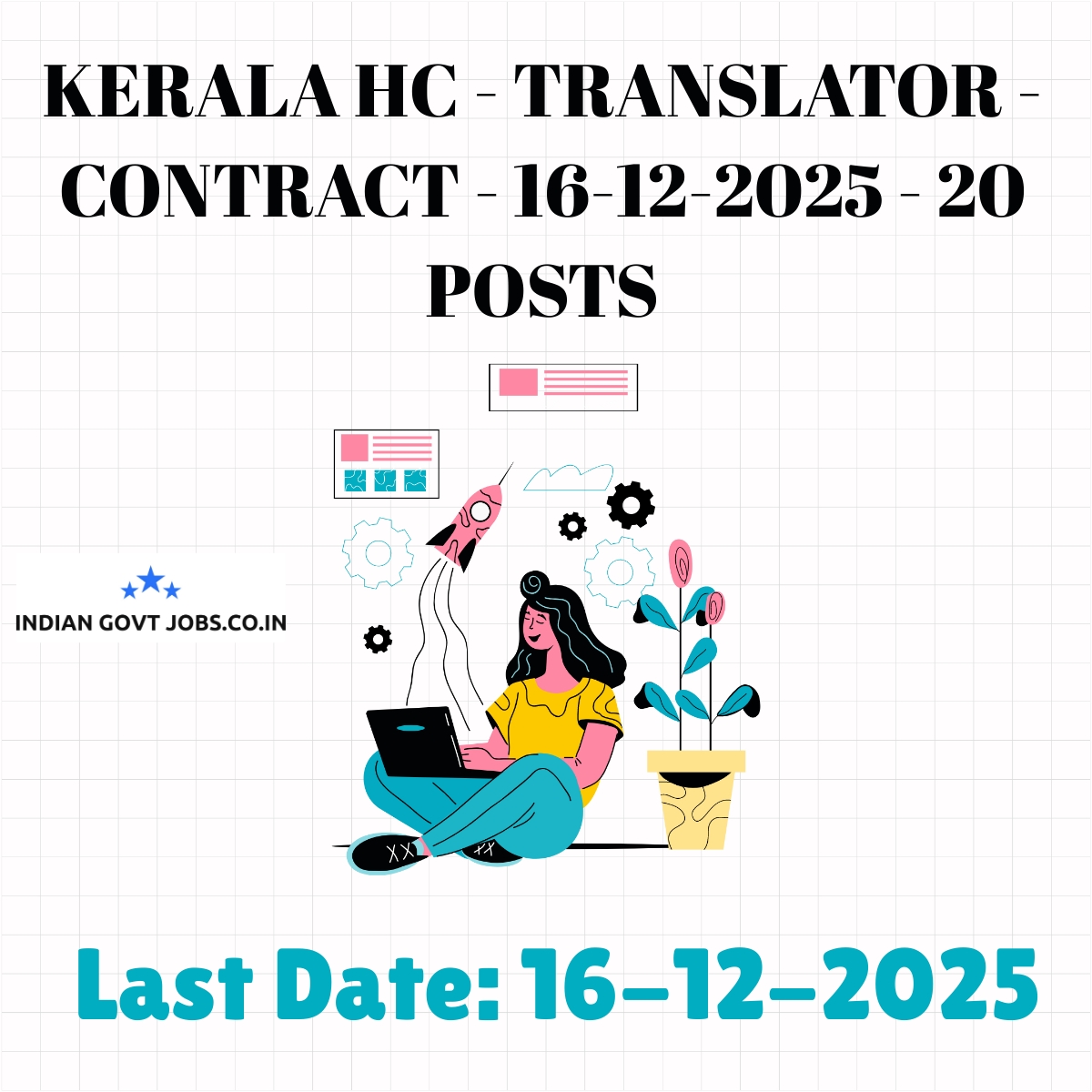 High Court of Kerala invites online applications for 20 contractual Translator posts. Candidates must have a Bachelor’s degree in any subject and be born between 02-01-1989 and 01-01-2007. Selection involves a Translation Test and an interview. The pay is Rs 31020. Application fee is Rs 500 payable online. Last date to apply is 16-12-2025.