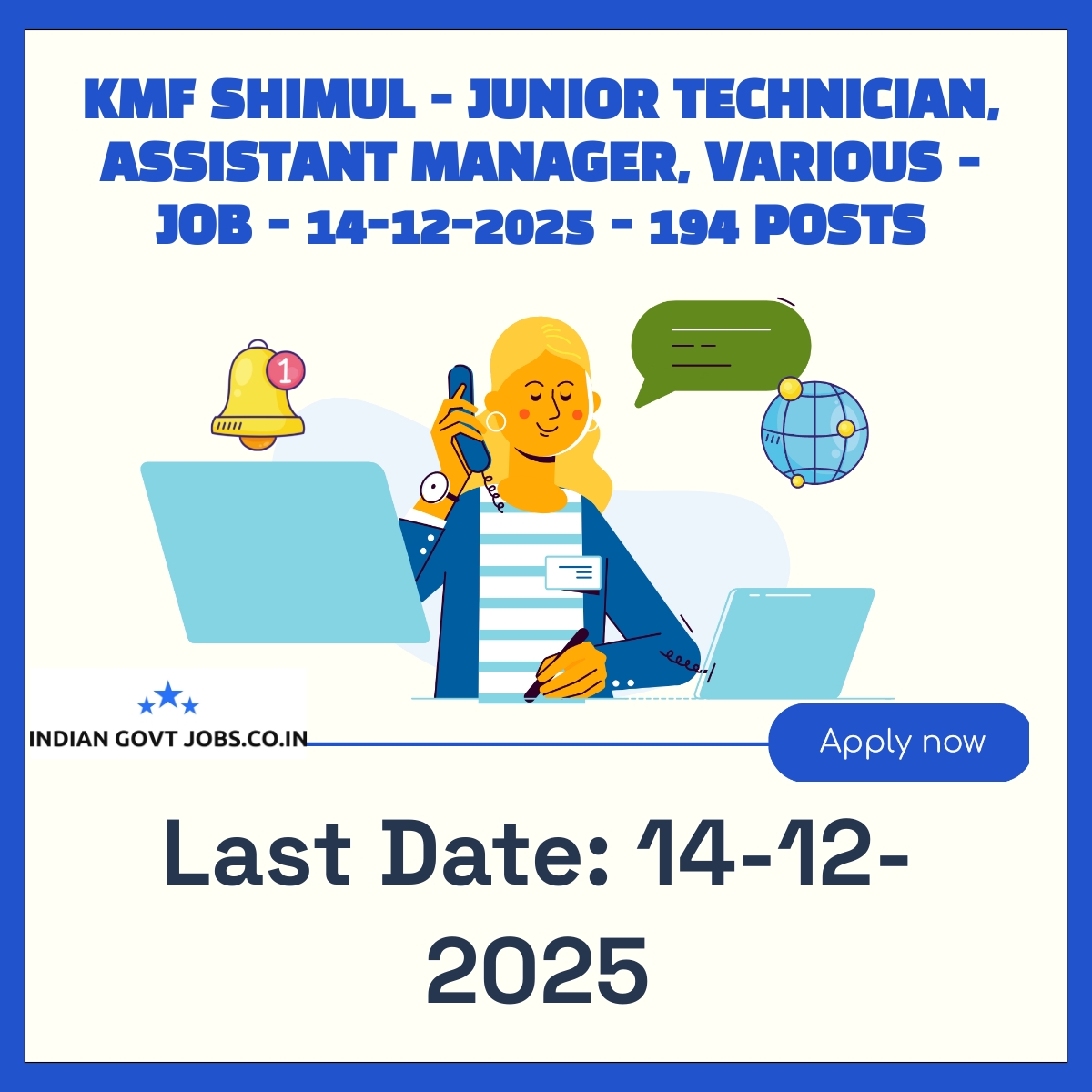 KMF SHIMUL invites online applications for 194 regular posts including Junior Technician, Assistant Manager, and various other positions in Karnataka. Eligible candidates must apply online by 14-12-2025. The recruitment process includes application screening followed by interviews. Application fees vary by category and must be paid online. Candidates should upload scanned photo and signature during application.