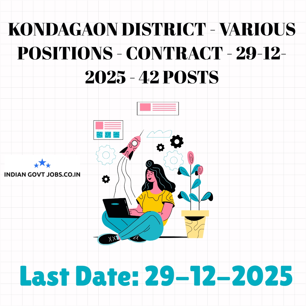 Kondagaon District Education Office invites applications for 42 contractual posts of Lecturer, Teacher, and Librarian in government schools. Candidates must meet the specified qualifications and age limits. Selection will be through personal interviews. No application fee is required. Applications must be sent by 29-12-2025 to the given address with all required documents.