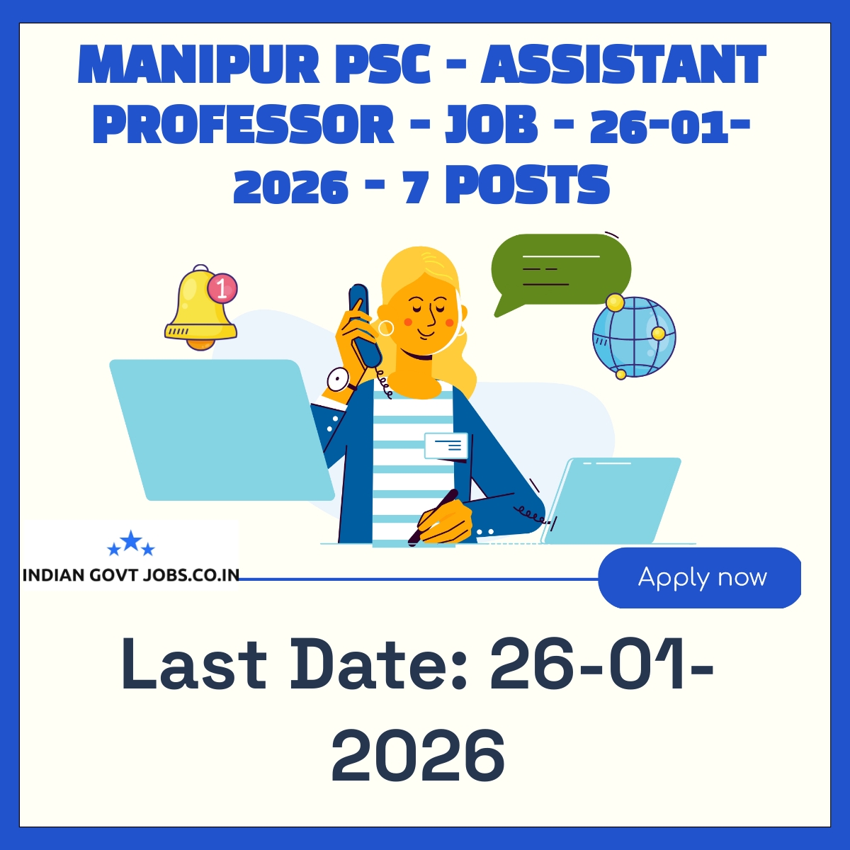 Manipur Public Service Commission invites online applications for 7 permanent Assistant Professor posts at DM College Teacher Education. Candidates must have relevant postgraduate qualifications with NET/SLET/SET or Ph.D. and teaching experience. The recruitment is based on academic scoring and interview performance. Application fee varies by category and is payable online. The last date to apply is 26-01-2026.