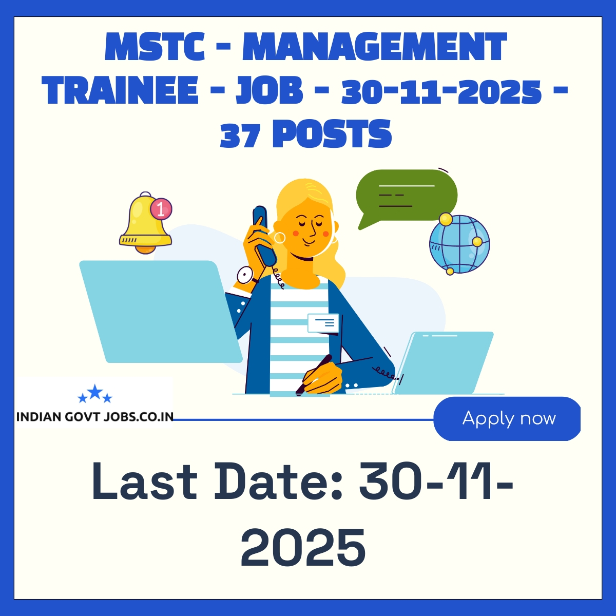 MSTC Limited invites online applications for 37 regular Management Trainee posts across various trades. Candidates must meet specific educational qualifications and age limits (below 28 years). The recruitment process includes a computer-based test, group discussion, and interview. There is no application fee for SC/ST/PWD candidates; others must pay Rs 500 online. Selected candidates will undergo one year of on-the-job training and then be placed as Assistant Managers with a pay scale of Rs. 50,000 – 1,60,000. The last date to apply online is 30-11-2025.