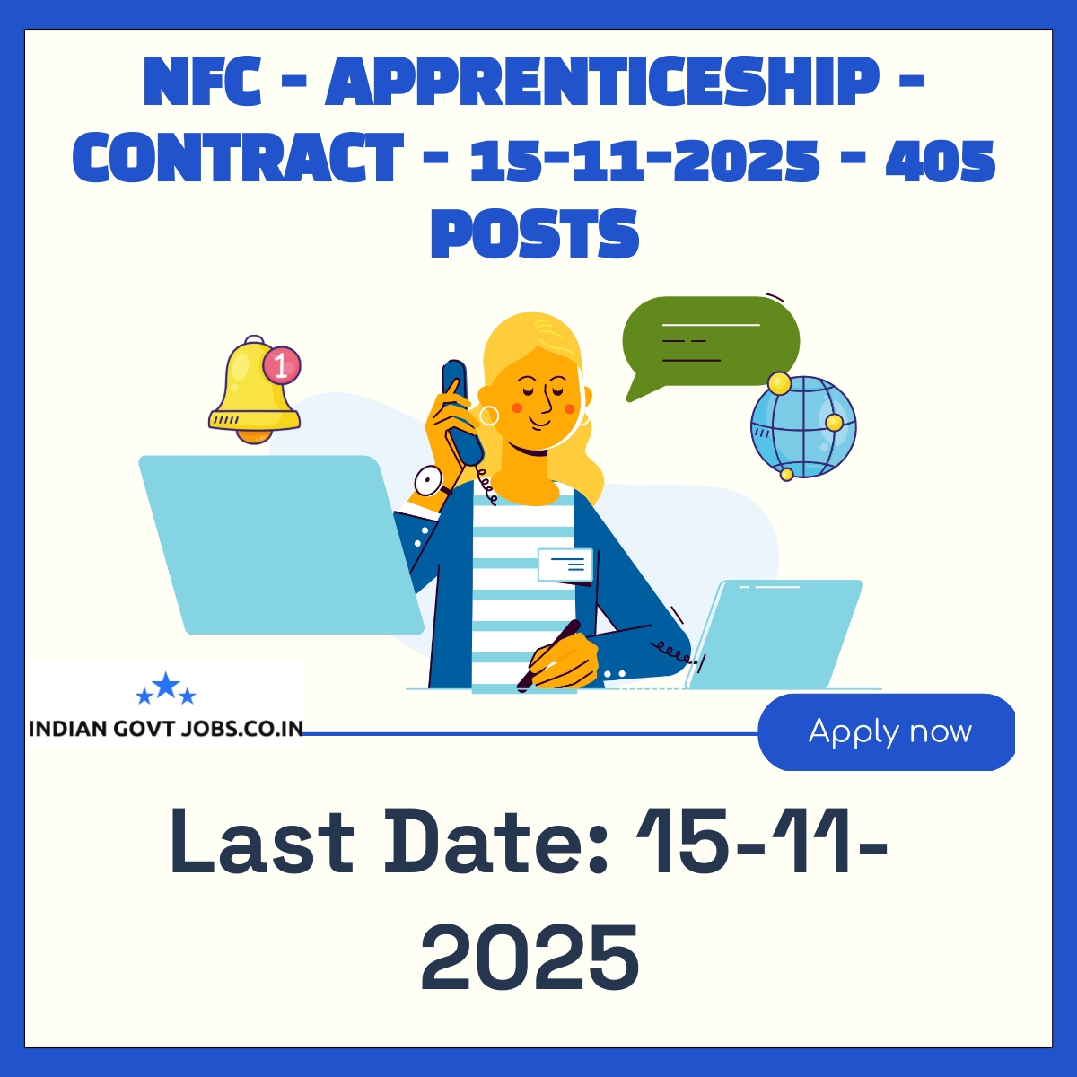Nuclear Fuel Complex (NFC) invites online applications from ITI passed candidates for 405 Apprenticeship posts in Telangana. The apprenticeship training lasts one year in various trades. Candidates must be at least 18 years old and not exceed 30 years (varies by category). There is no application fee. Selection involves skill tests and interviews. The last date to apply online is 15-11-2025.