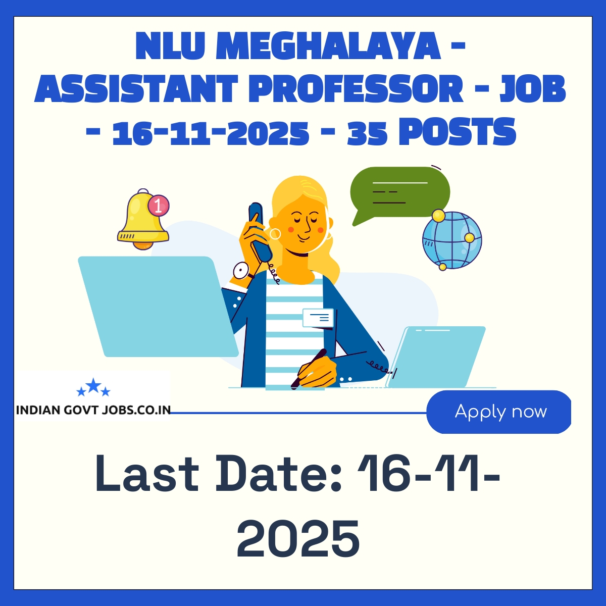 National Law University Meghalaya (NLU Meghalaya) invites applications for 35 permanent Assistant Professor posts. Candidates with a PhD in the related field can apply online by 16-11-2025. The maximum age limit is 40 years. There is no application fee. Selection will be through shortlisting and interview. Applicants must submit supporting documents for age, qualification, and experience.