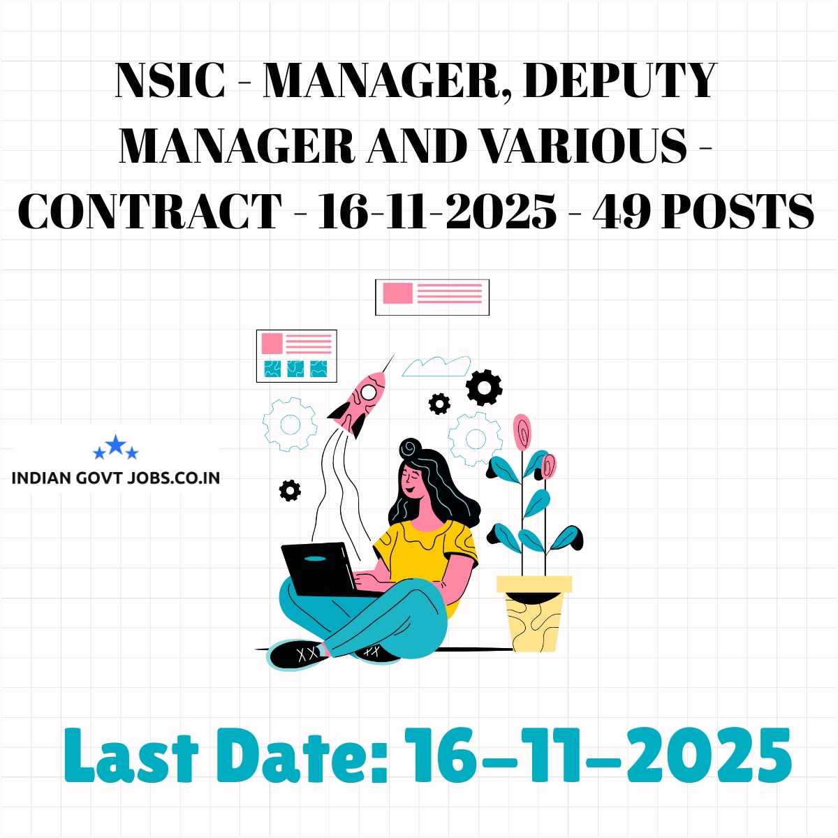 National Small Industries Corporation Limited (NSIC) invites online applications for 49 contractual posts including Manager and Deputy Manager. Candidates from Delhi with qualifications ranging from Graduates to Engineers can apply. The recruitment process involves application scrutiny followed by interviews. No application fee is required. Applications must be submitted online by 16-11-2025.