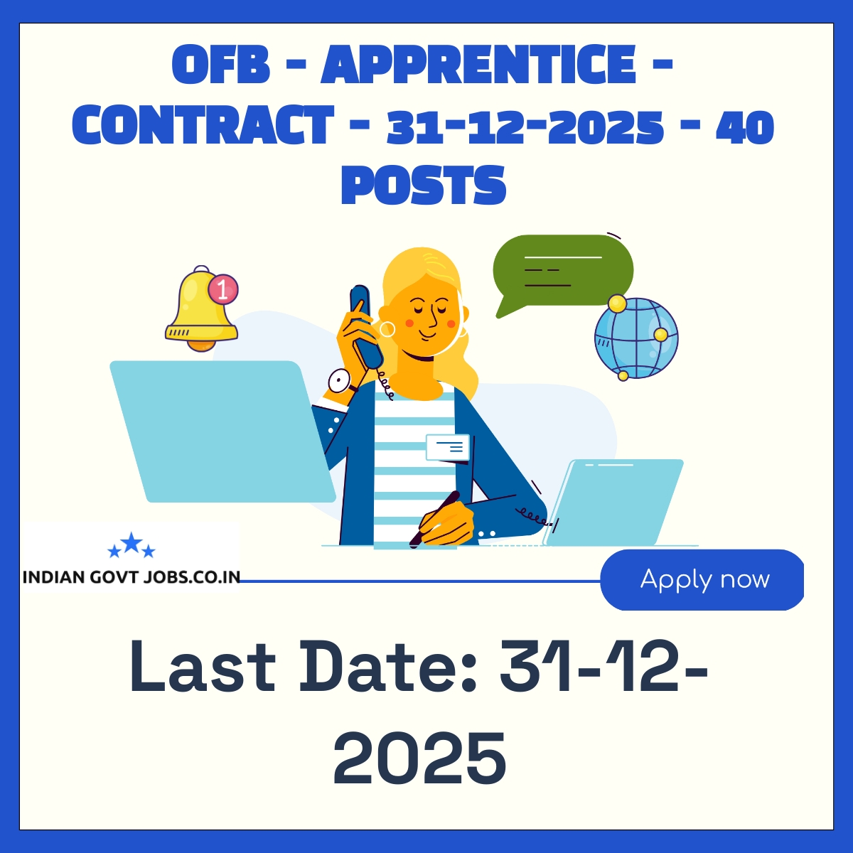 Ordnance Factory Board (OFB) invites applications for 40 contractual Apprentice posts at Ordnance Factory Jabalpur. Positions include Graduate Apprentice and Technician Apprentice with qualifications ranging from engineering degrees to diplomas in relevant fields. Selection is merit-based on qualifying exam marks followed by document verification. No application fee is required. Applications must be sent offline to the specified address by 31-12-2025.